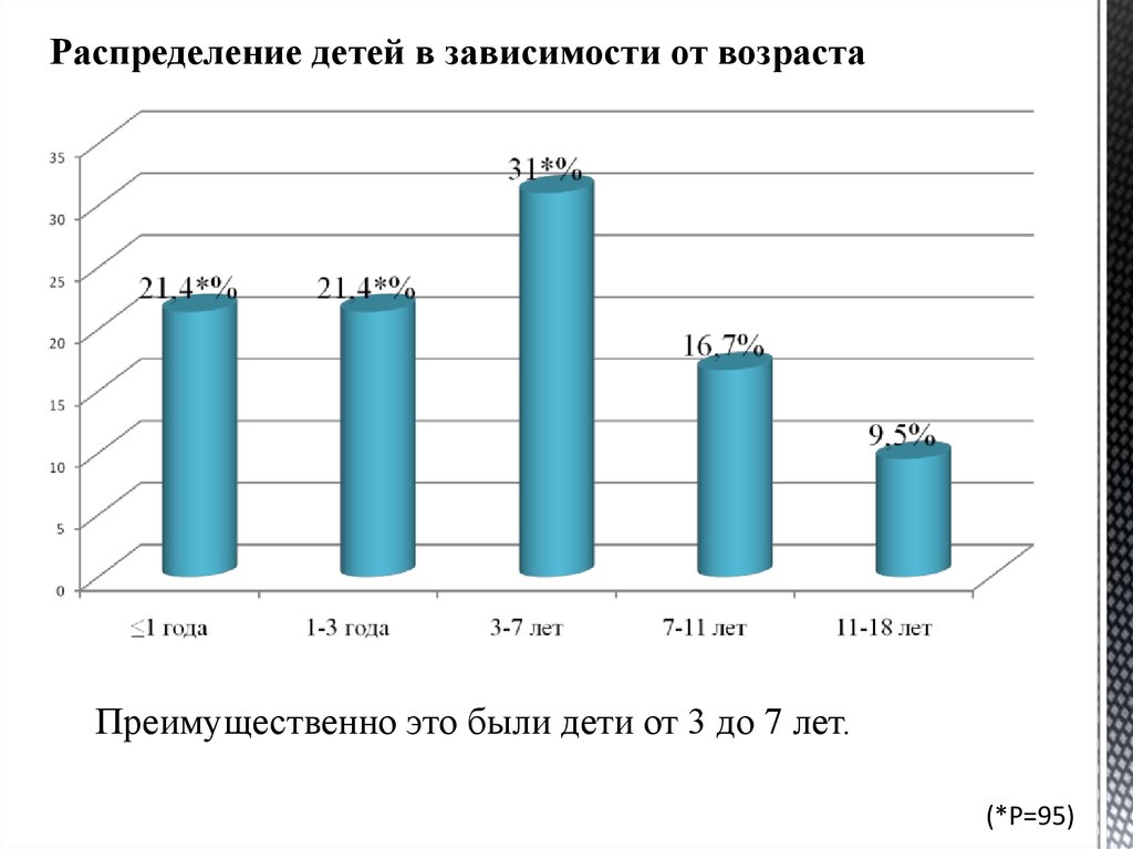 Распределение детей в зависимости от возрастаПреимущественно это были дети от 3 до 7 лет.