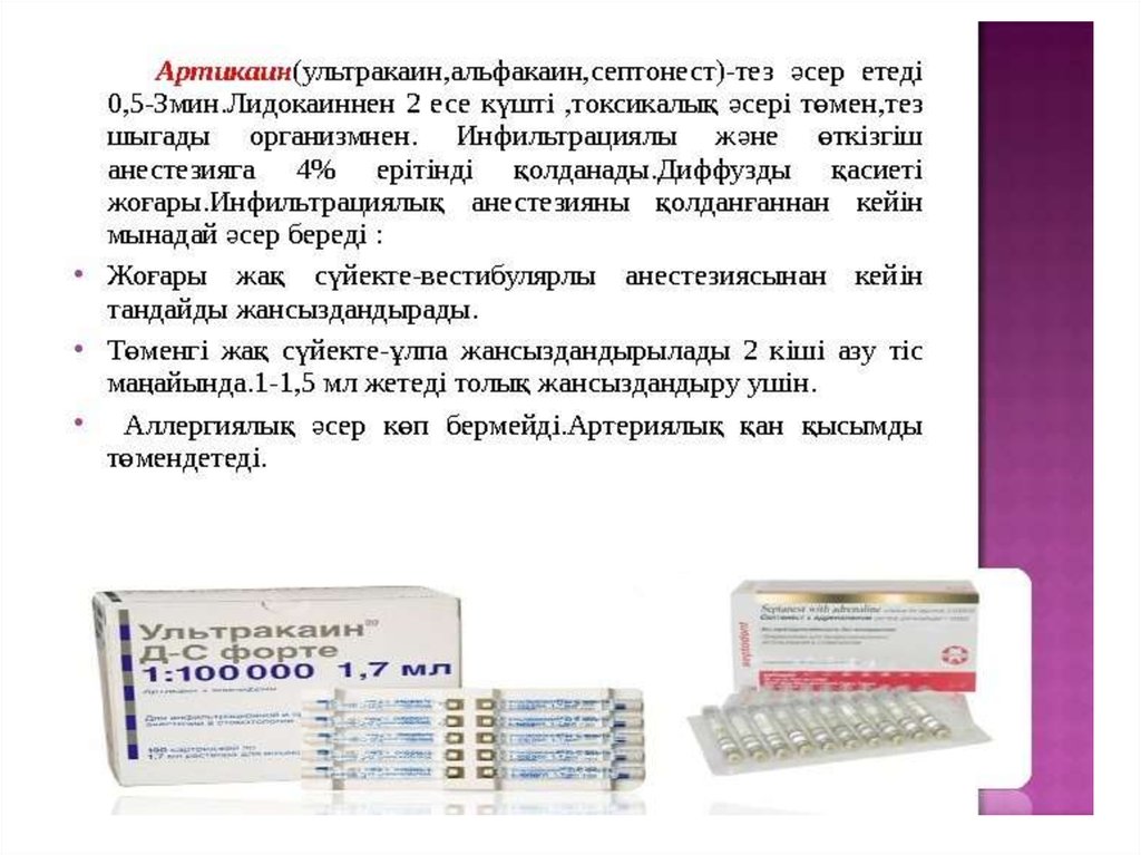 Заманауи карпульді анестетиктер. Түрлері. Клиника – фармакологиялық мінездеме