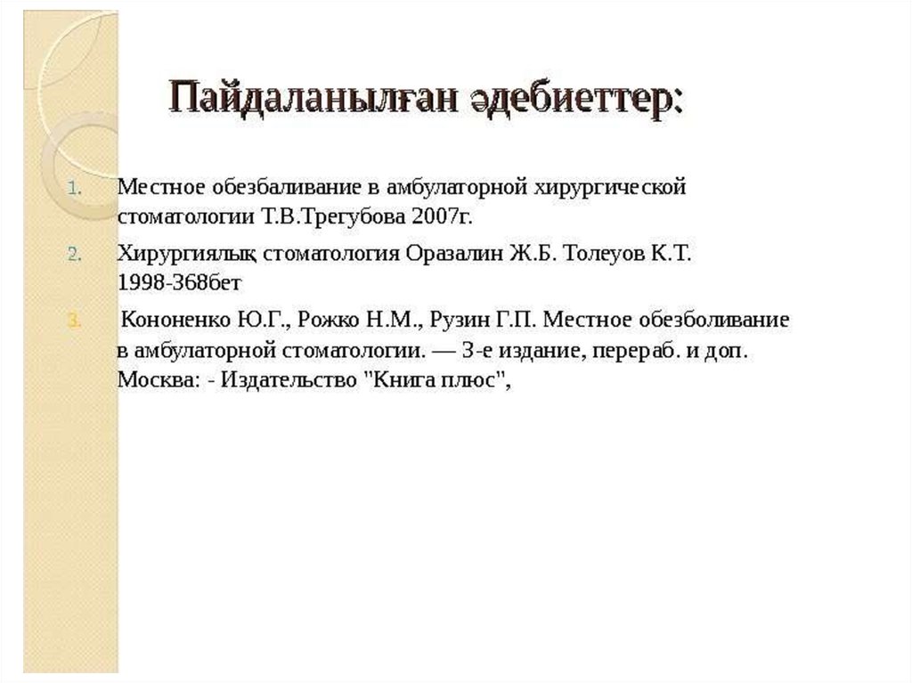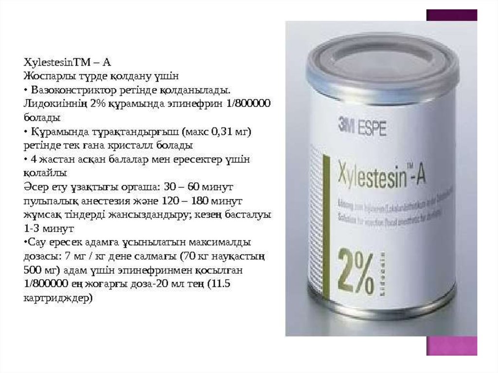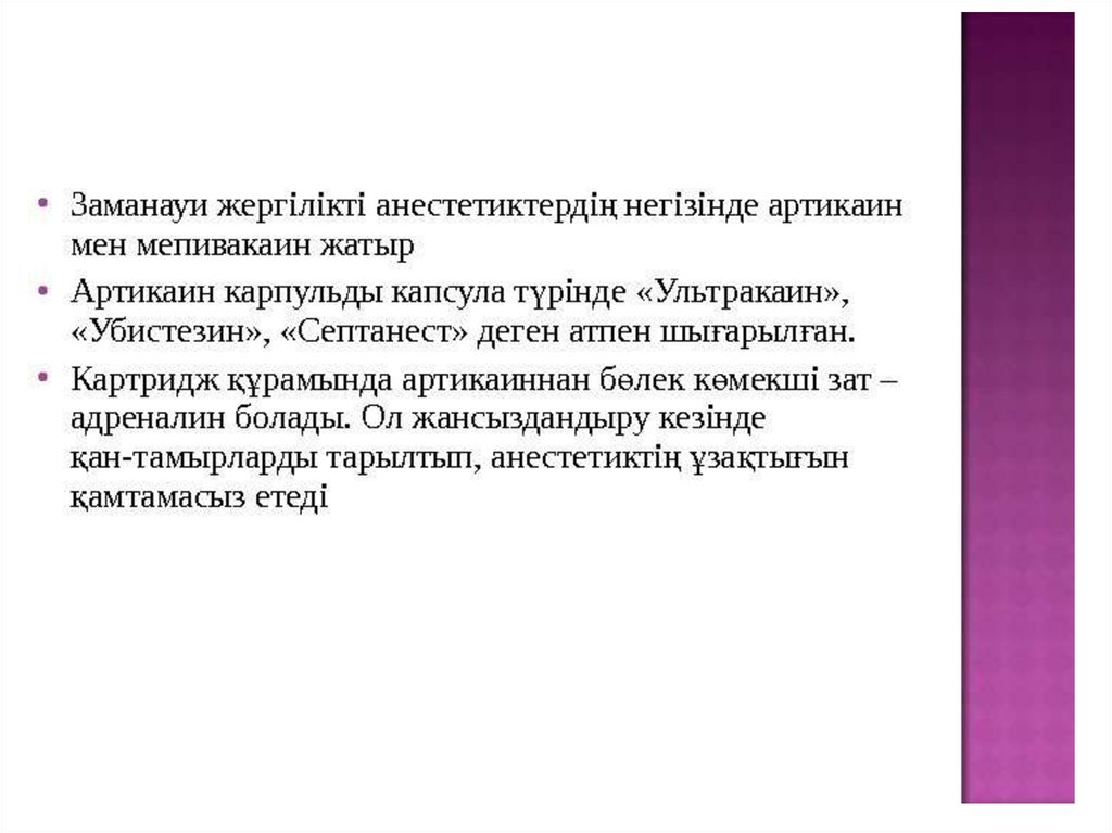 Тақырыбы: Заманауи карпульді анестетиктер. Түрлері. Клиника –