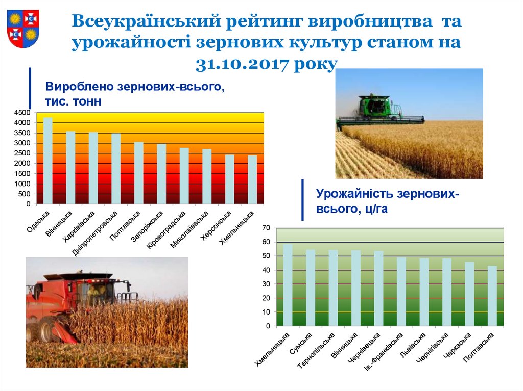 Всеукраїнський рейтинг виробництва таурожайності зернових культур станом на