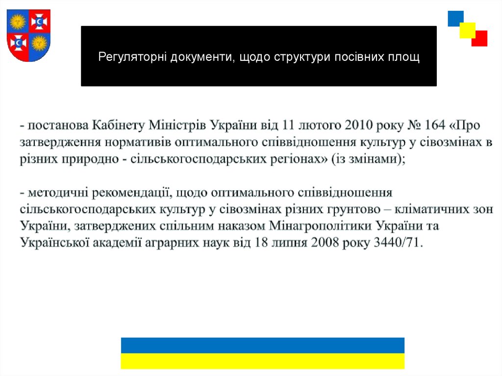 Регуляторні документи, щодо структури посівних площ13.