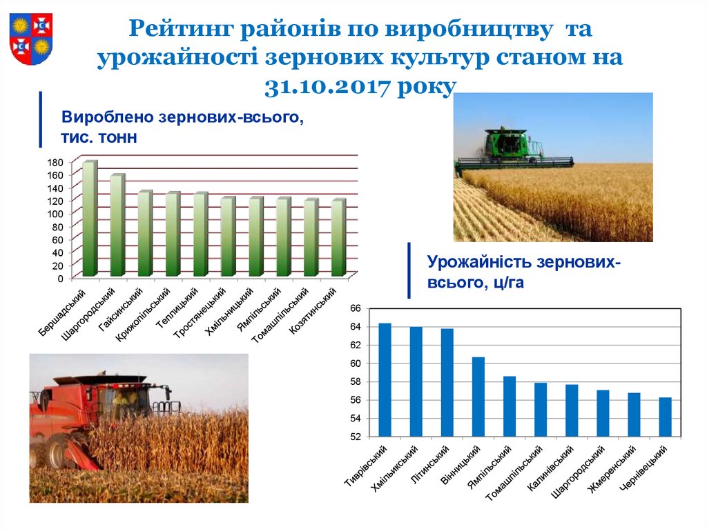 Рейтинг районів по виробництву таурожайності зернових культур станом на