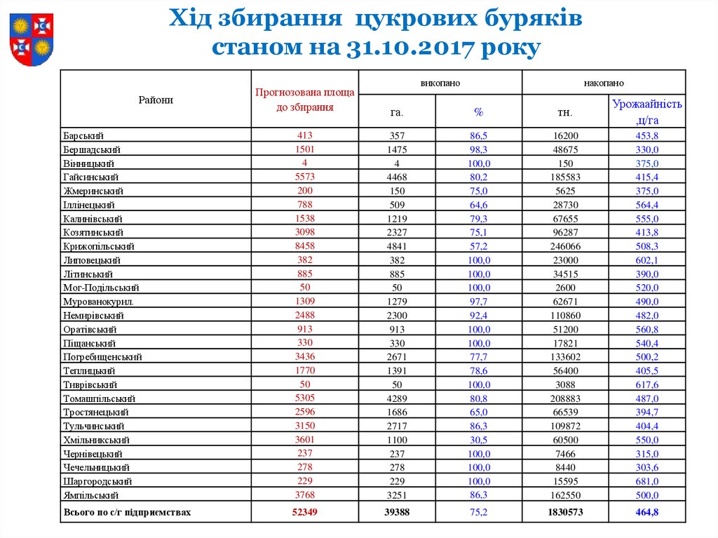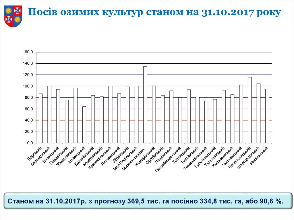 Станом на 31.10.2017р. з прогнозу 369,5 тис. га посіяно 334,8 тис. га, або 90,6 %.