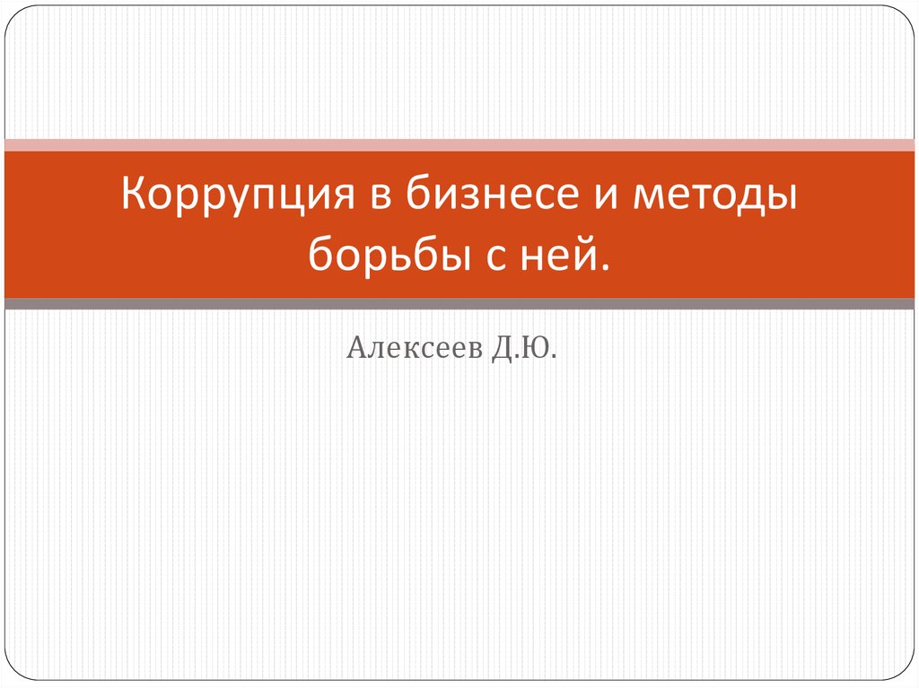 1. Коррупция в бизнесе и методы борьбы с ней.