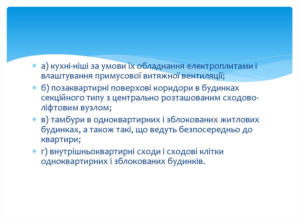 а) кухні-ніші за умови їх обладнання електроплитами івлаштування примусової витяжної вентиляції;