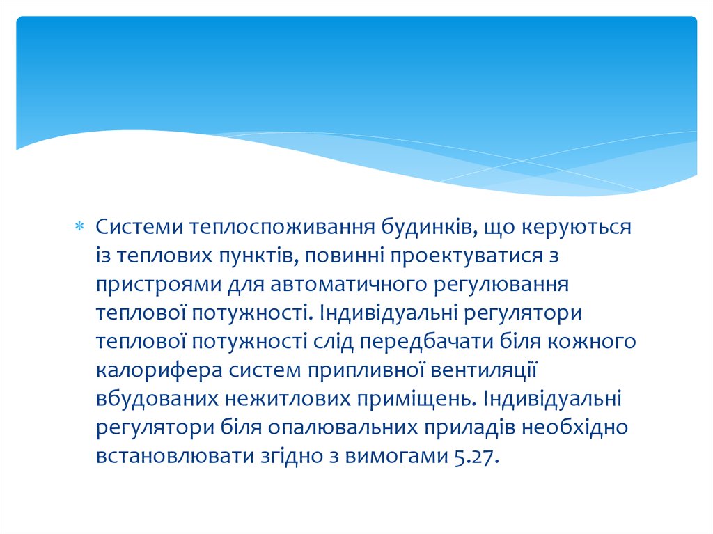 Системи теплоспоживання будинків, що керуютьсяіз теплових пунктів, повинні проектуватися з
