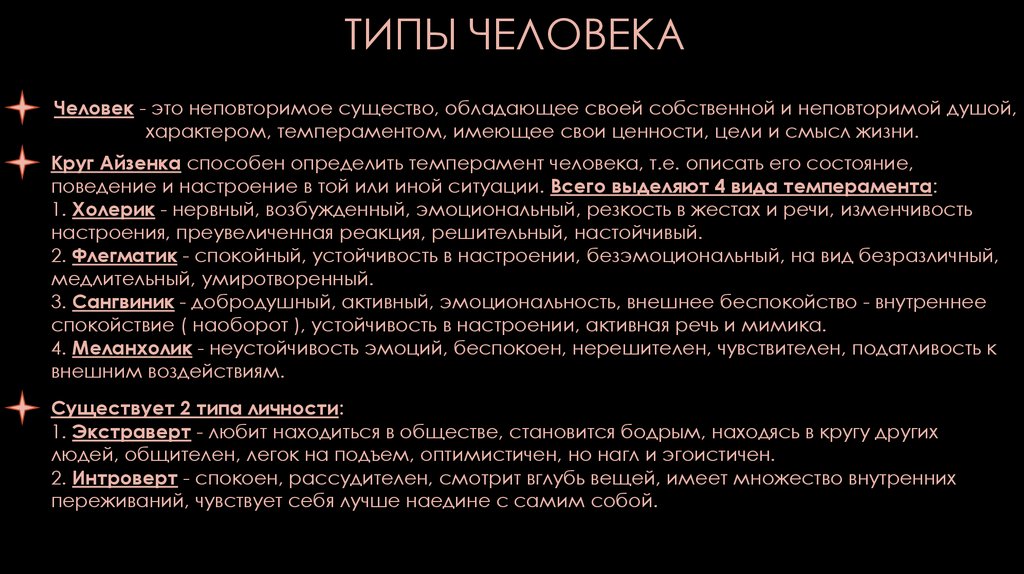 ТИПЫ ЧЕЛОВЕКАЧеловек - это неповторимое существо, обладающее своей собственной и неповторимой душой,