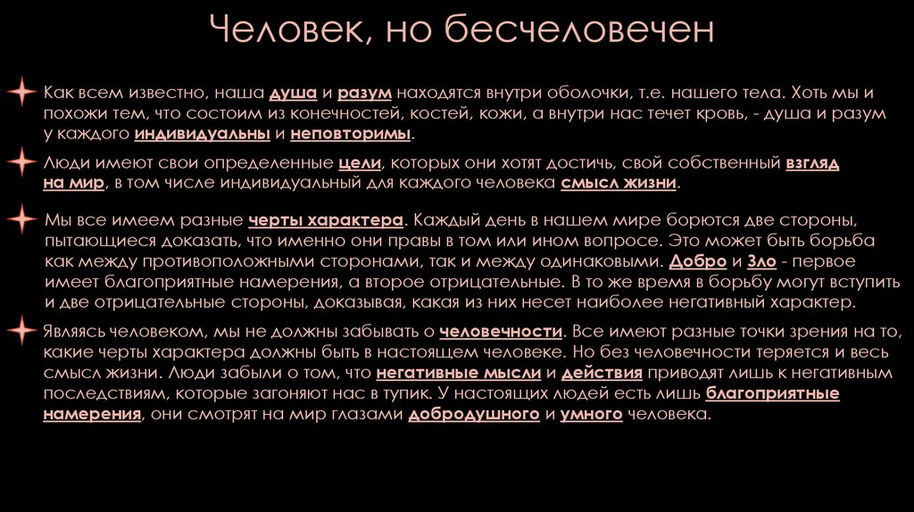 Человек, но бесчеловеченКак всем известно, наша душа и разум находятся внутри оболочки, т.е. нашего тела. Хоть мы и