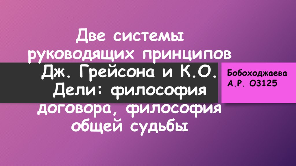 Две системы руководящих принципов Дж. Грейсона и К.О. Дели: философия договора, философия общей судьбы