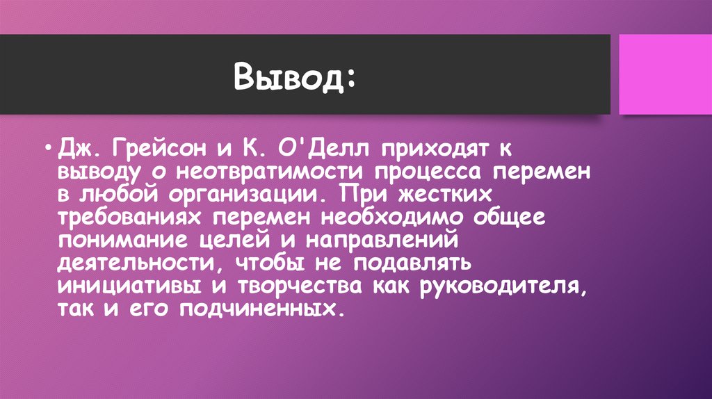 Вывод:• Дж. Грейсон и К. О'Делл приходят к