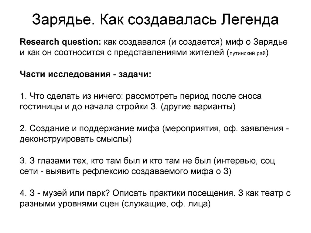 Зарядье. Как создавалась ЛегендаResearch question: как создавался (и создается) миф о Зарядье