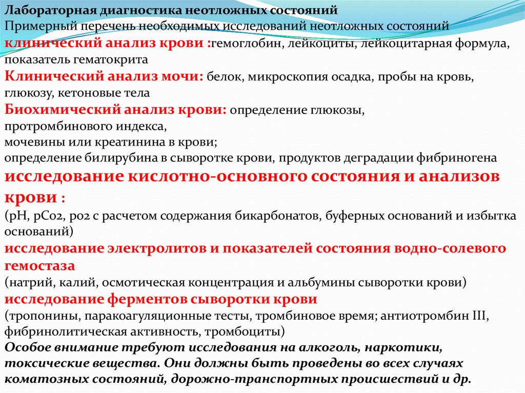 Лабораторная диагностика неотложных состоянийПримерный перечень необходимых исследований неотложных состояний