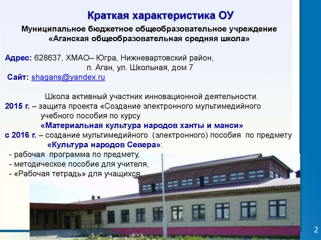 Краткая характеристика ОУМуниципальное бюджетное общеобразовательное учреждение