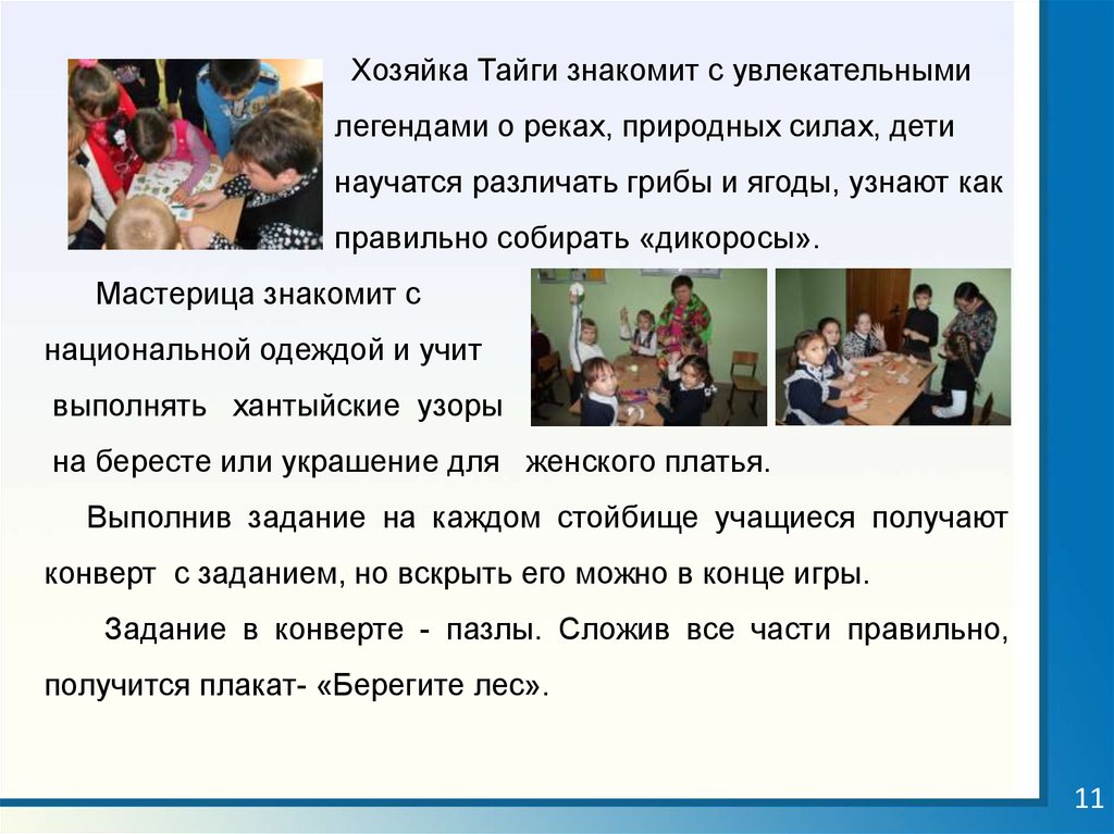 В роли героев на стойбищах выступают родители учащихся.В избушке у Охотника дети играют в
