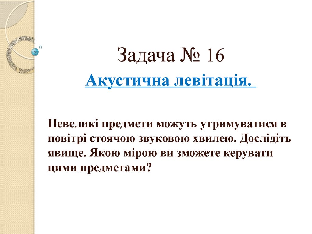 Задача № 16Акустична левітація.