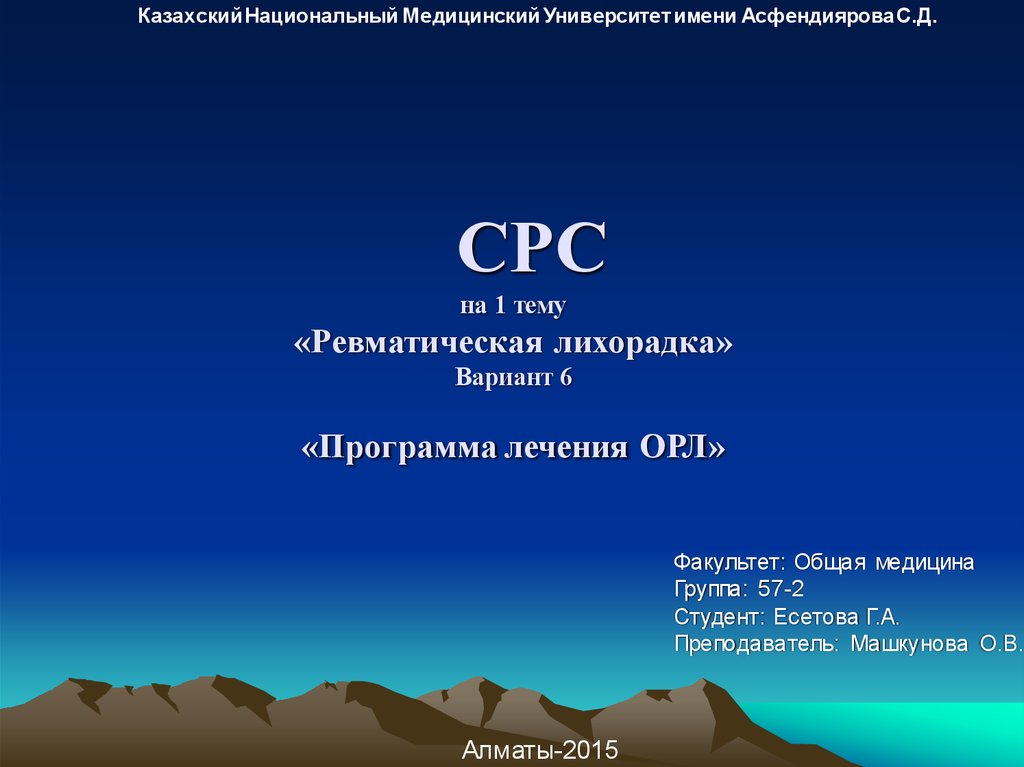 Казахский Национальный Медицинский Университет имени Асфендиярова С.Д.СРС
