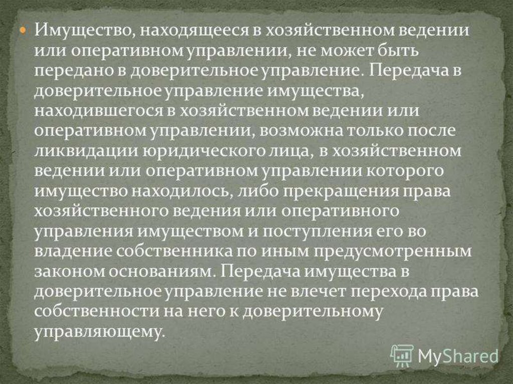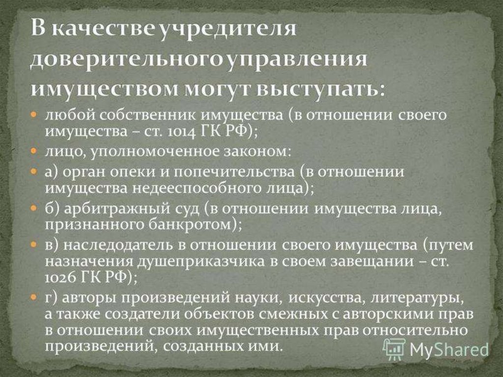 Доверительное управление имуществом. ГМС в доверительном управлении имуществом
