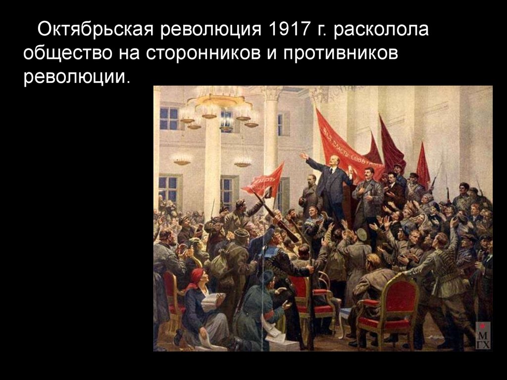 Октябрьская революция 1917 г. раскололаобщество на сторонников и противников