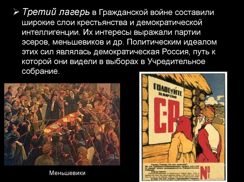 Третий лагерь в Гражданской войне составилиширокие слои крестьянства и демократической