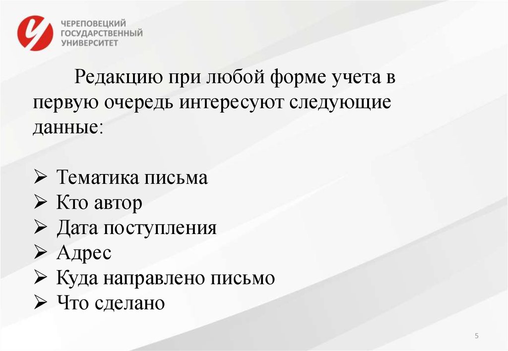 Редакцию при любой форме учета впервую очередь интересуют следующие