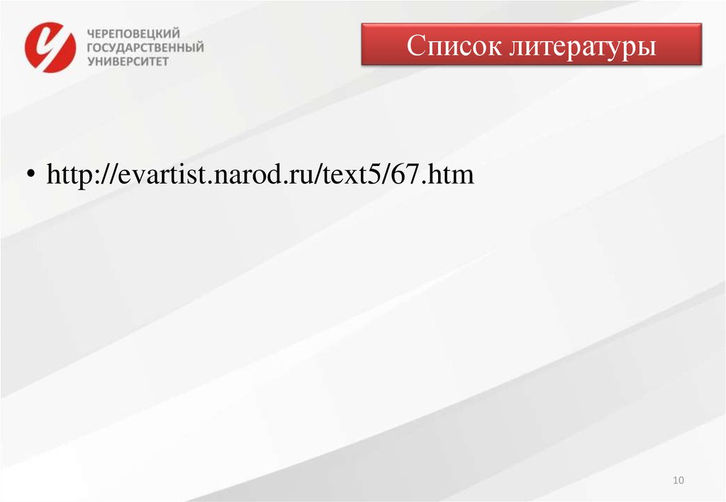 Список литературы• http://evartist.narod.ru/text5/67.htm