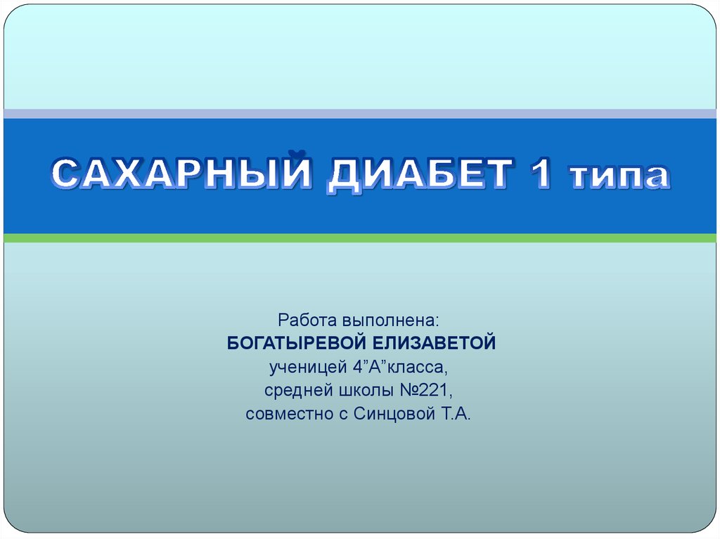 1. САХАРНЫЙ ДИАБЕТ 1 типа