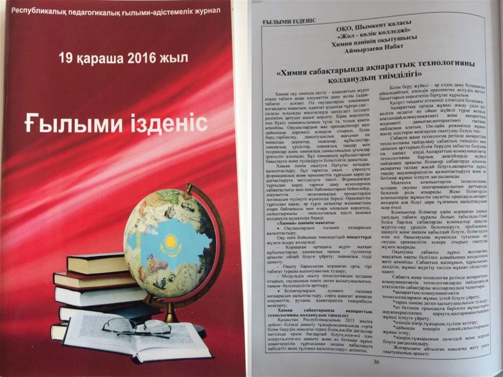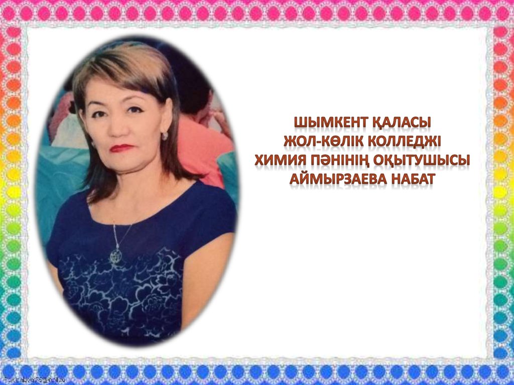 1. Шымкент қаласы Жол-көлік колледжі Химия пәнінің оқытушысы Аймырзаева Набат