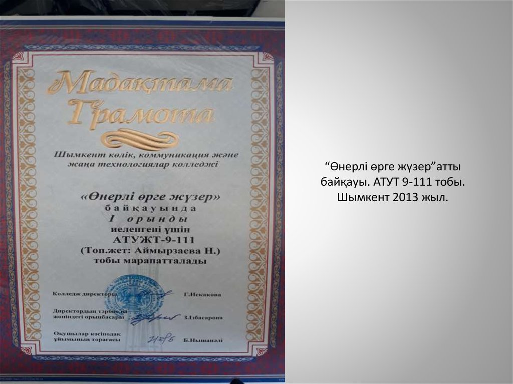 “Өнерлі өрге жүзер”аттыбайқауы. АТУТ 9-111 тобы.