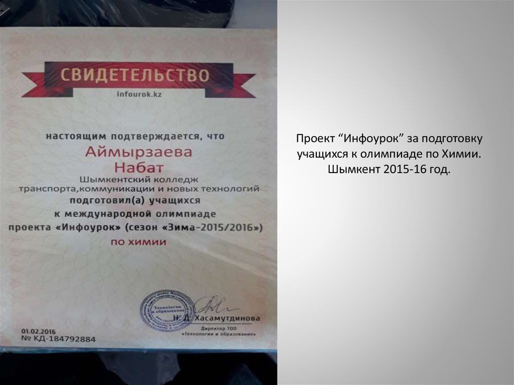 Проект “Инфоурок” за подготовкуучащихся к олимпиаде по Химии.