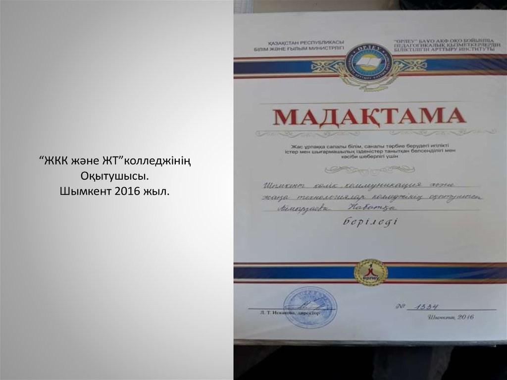 “ЖКК және ЖТ”колледжініңОқытушысы.