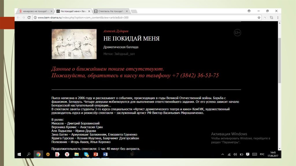13. А. Дударев «Не покидай меня», в роли Зины Батян, 3 курс, КОТД им. А.В. Луначарского