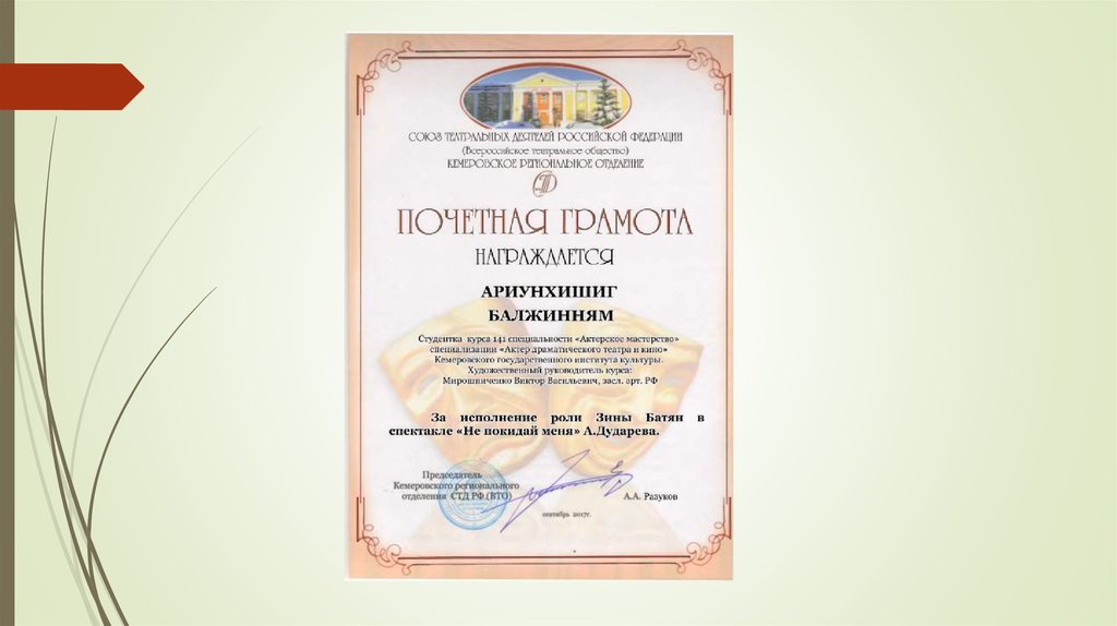 7. А. Вампилов «Успех», отрывок, 2 курс, в роли Маши