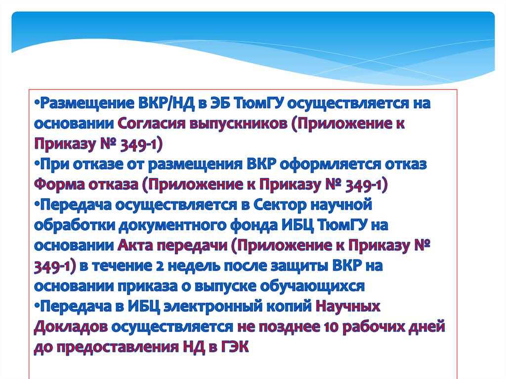 Порядок передачи ВКР для размещения в электронной библиотеке