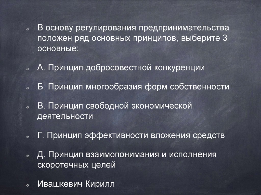 В основу регулирования предпринимательстваположен ряд основных принципов, выберите 3