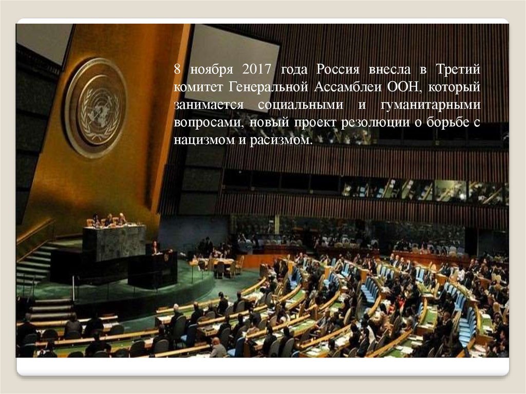 8 ноября 2017 года Россия внесла в Третийкомитет Генеральной Ассамблеи ООН, который