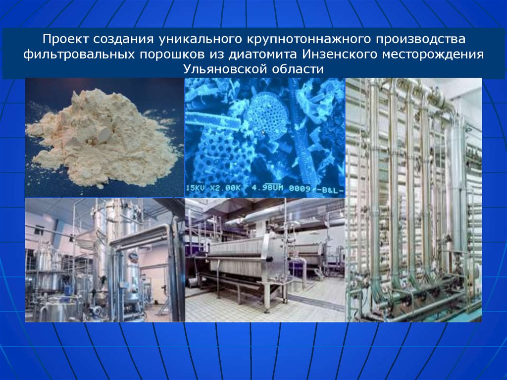 Проект создания уникального крупнотоннажного производствафильтровальных порошков из диатомита Инзенского месторождения