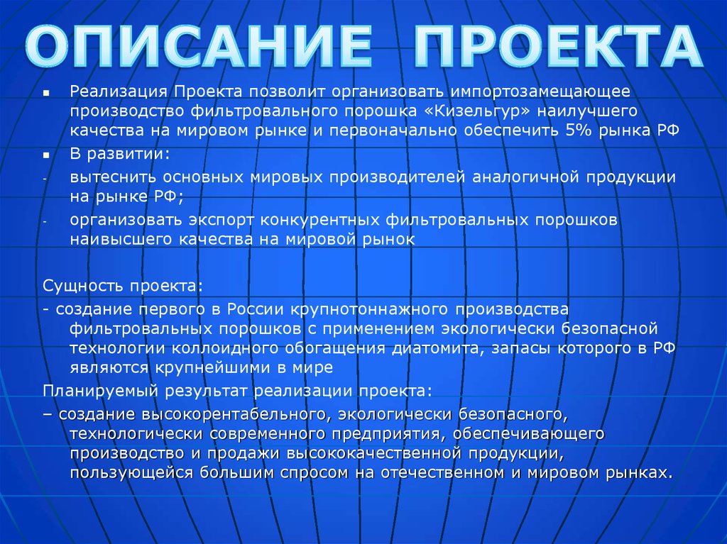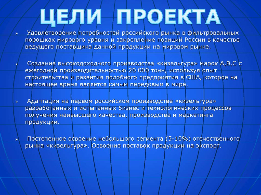 Удовлетворение потребностей российского рынка в фильтровальныхпорошках мирового уровня и закрепление позиций России в качестве