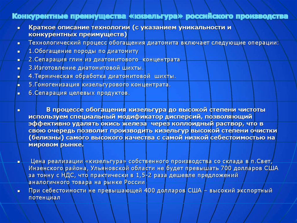 Краткое описание технологии (с указанием уникальности иконкурентных преимуществ)
