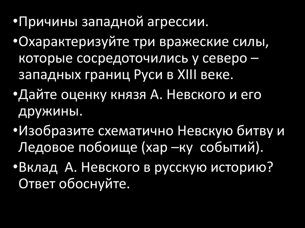 •Причины западной агрессии.•Охарактеризуйте три вражеские силы,