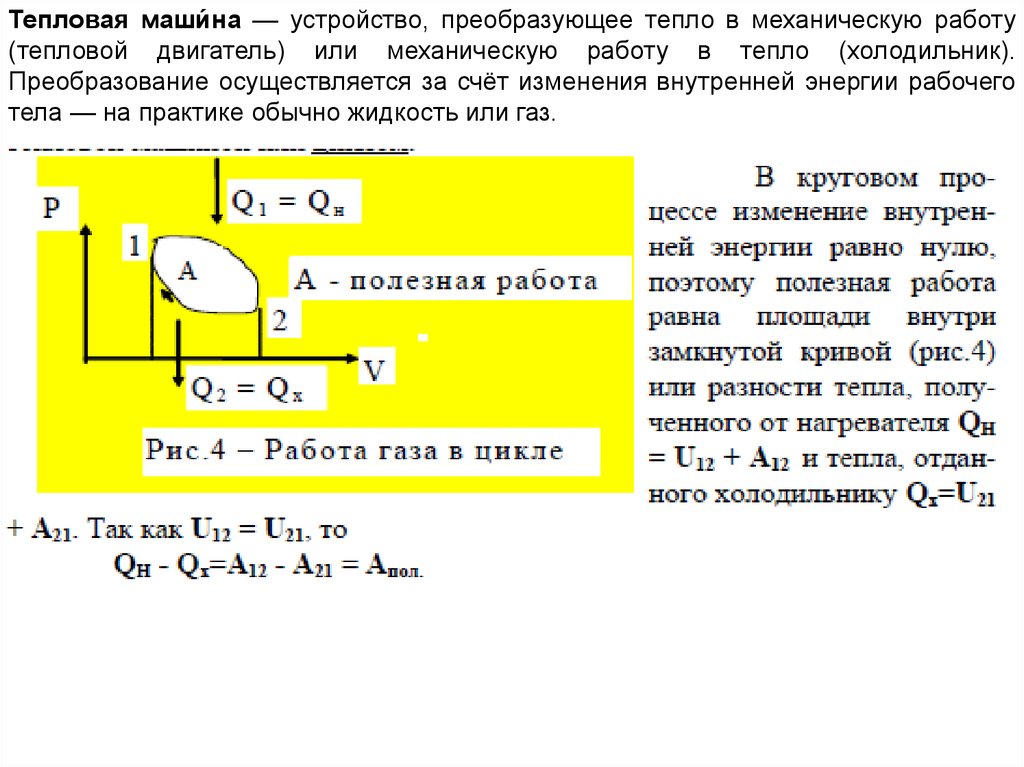 Преобразование осуществляется за счёт изменения внутренней энергии рабочего