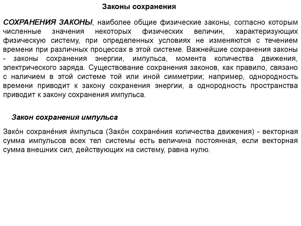 Законы сохраненияСОХРАНЕНИЯ ЗАКОНЫ, наиболее общие физические законы, согласно которым