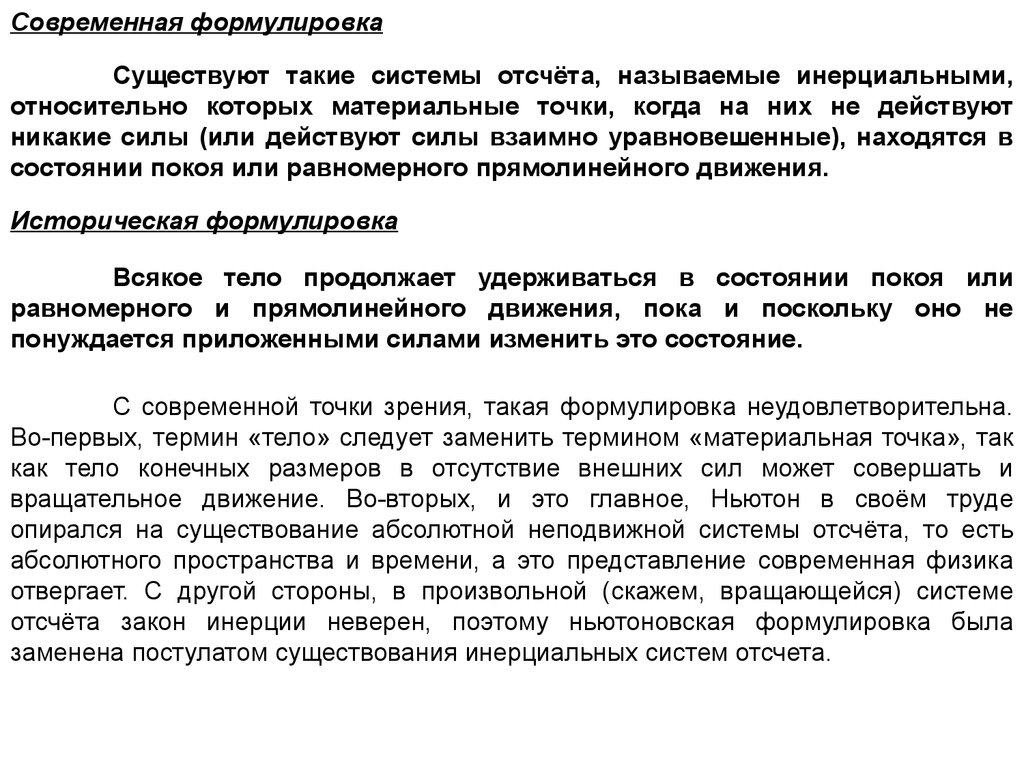 Современная формулировкаСуществуют такие системы отсчёта, называемые инерциальными,