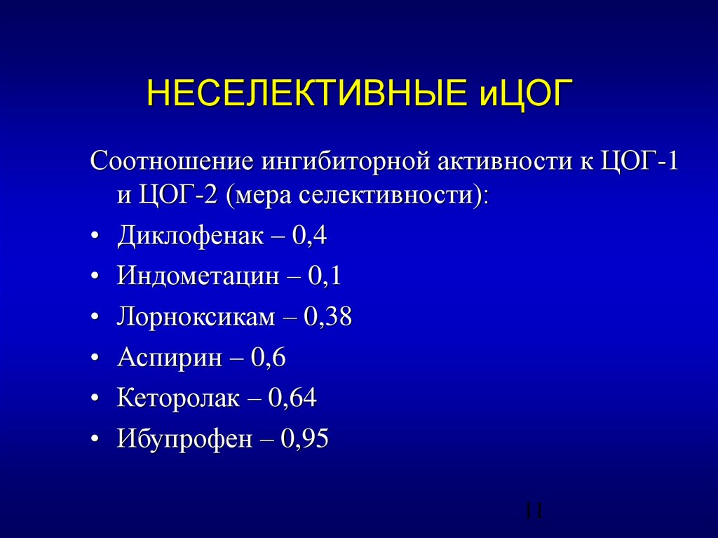 НЕСЕЛЕКТИВНЫЕ иЦОГСоотношение ингибиторной активности к ЦОГ-1
