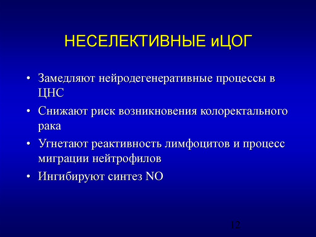 НЕСЕЛЕКТИВНЫЕ иЦОГ• Замедляют нейродегенеративные процессы в