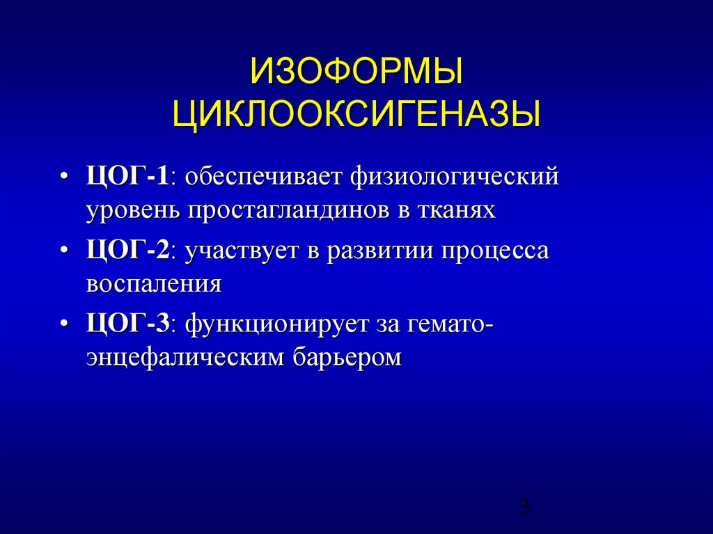 • ЦОГ-3: функционирует за гематоэнцефалическим барьером