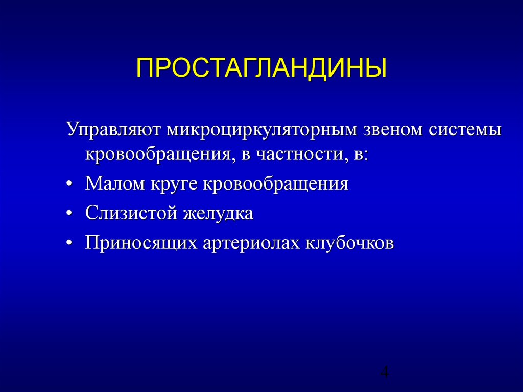 ПРОСТАГЛАНДИНЫУправляют микроциркуляторным звеном системы