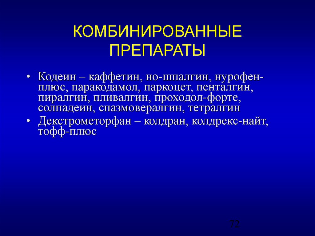 • Кодеин – каффетин, но-шпалгин, нурофенплюс, паракодамол, паркоцет, пенталгин,