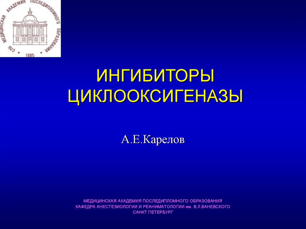 КАФЕДРА АНЕСТЕЗИОЛОГИИ И РЕАНИМАТОЛОГИИ им. В.Л.ВАНЕВСКОГО