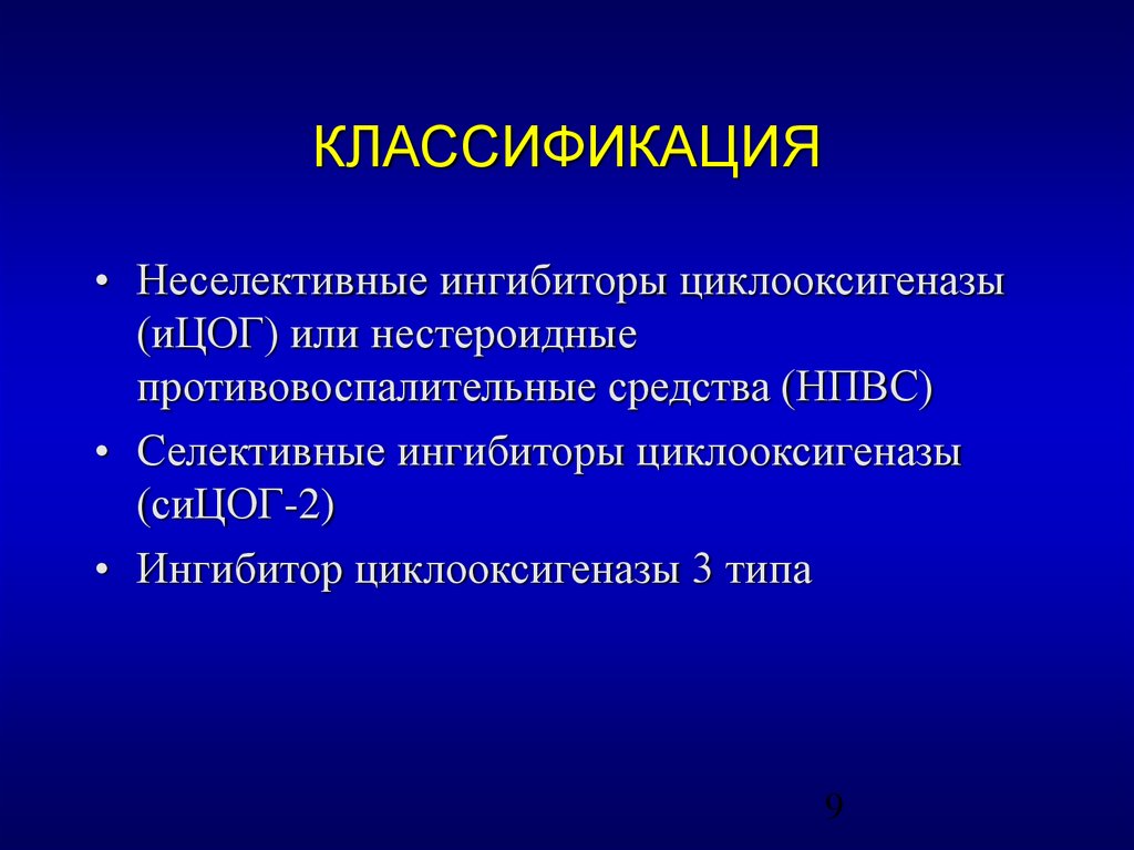 КЛАССИФИКАЦИЯ• Неселективные ингибиторы циклооксигеназы