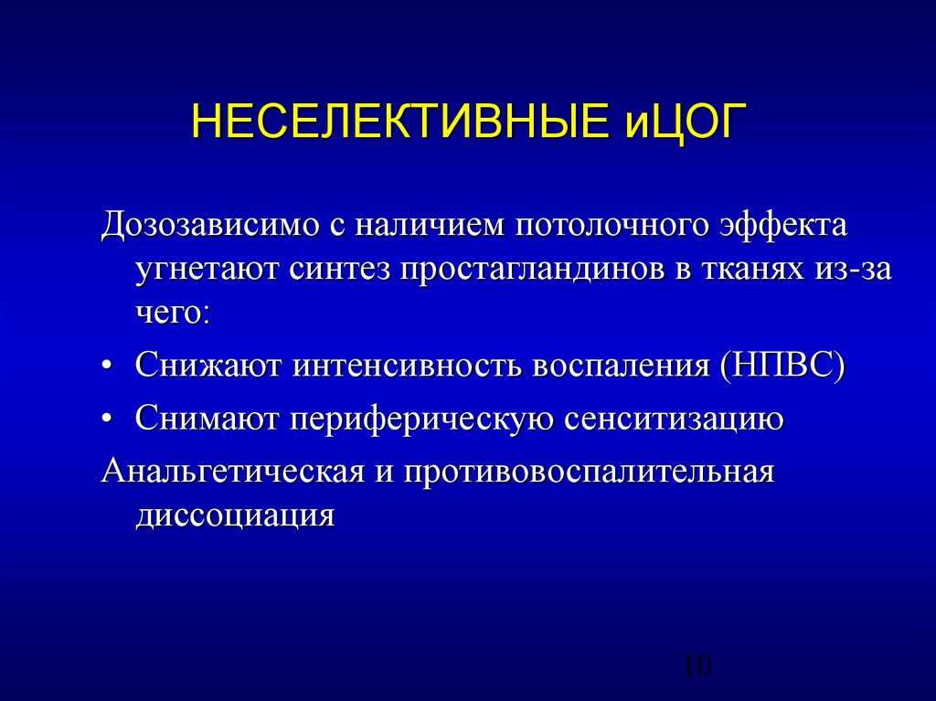 НЕСЕЛЕКТИВНЫЕ иЦОГДозозависимо с наличием потолочного эффекта